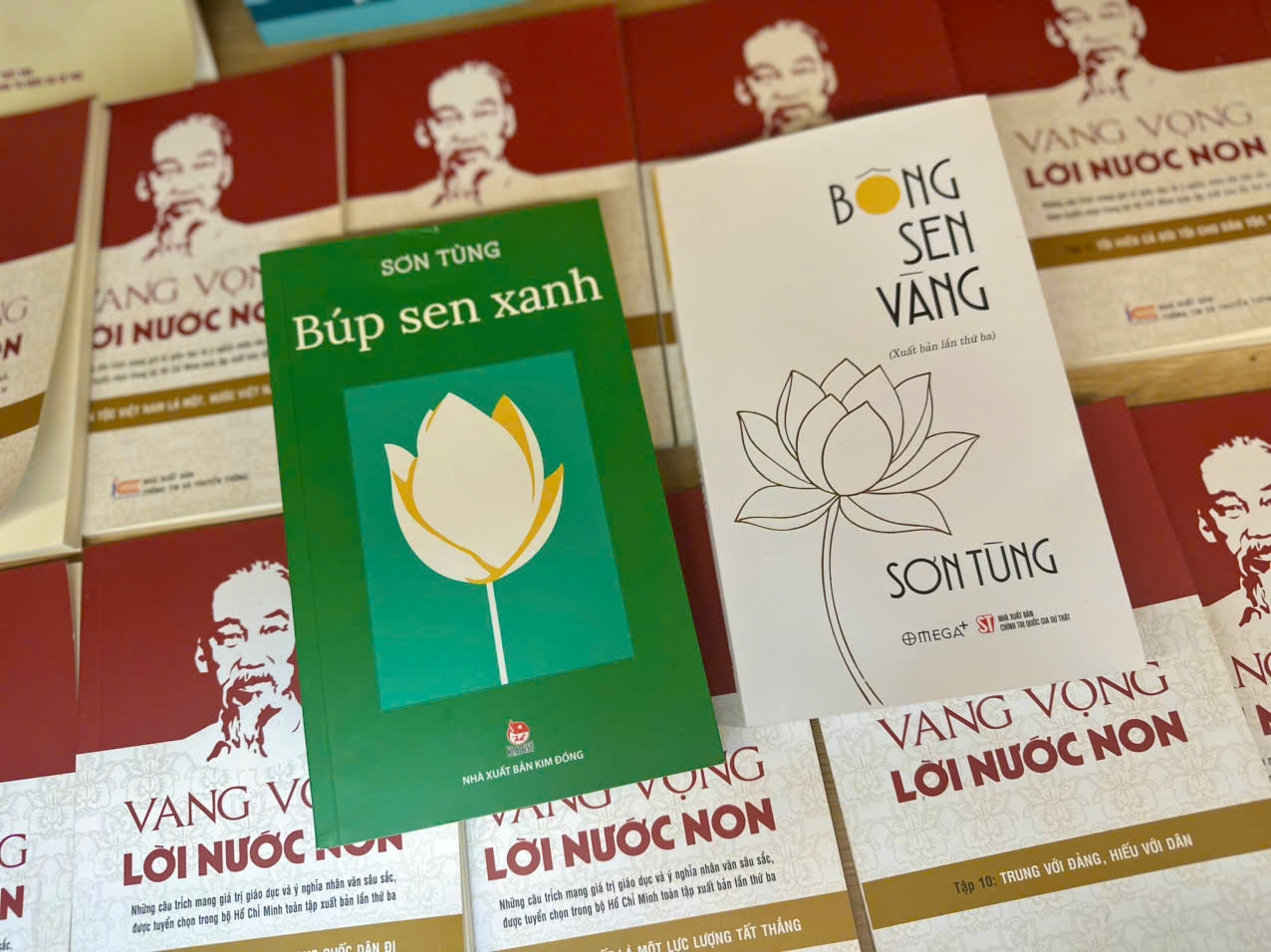 Bộ đôi tác phẩm Búp sen xanh và Bông sen vàng của nhà văn Sơn Tùng đang trưng bày tại Không gian văn hóa Hồ Chí Minh - Không gian tri thức PECC2.