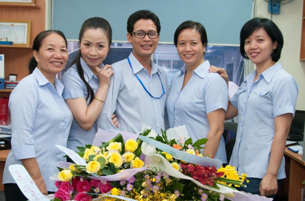 Chị Hồng Vân (thứ hai từ phải sang), cùng các đồng nghiệp tại PECC2