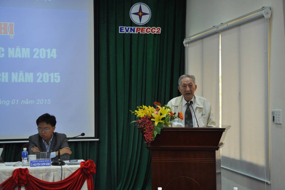 | Bài phát biểu của Ông Lê Quang Huyến – Nguyên giám đốc Công ty trong Lễ tổng kết 2014 Thưa đ/c lãnh đạo Tập đoàn Điện lực VN và các vị khách quý, Thưa đ/c lãnh đạo Cty Cổ phần TVXD Điện 2 và các XN thành viên, Thưa tất cả các Anh chị em tham dự hội nghị, Trước hết, tôi xin chân thành cảm ơn lãnh đạo Cty đã cho phép tôi được phát biểu vài cảm nghĩ trong buổi Tổng kết công tác năm 2014 và kế hoạch triển khai công tác 2015 của Cty. Năm 2014 là năm kinh tế rất khó khăn của toàn thế giới trong đó có đất nước ta, có Tập đoàn Điện lực VN và có Cty Cổ phần TVXD Điện 2. Ở trong nước có hàng ngàn công ty, xí nghiệp phải ngưng hoạt động hoặc thu hẹp sản xuất, đã nói lên tính khắc nghiệt của nền kinh tế thị trường - quy luật đào thải là điều tất yếu đối với những đơn vị làm ăn kém hiệu quả. Trong tình hình khó khăn đó, Công ty chúng ta cũng bị ảnh hưởng ở một số bộ môn bị thu hẹp, do thiếu dự án công trình, thiếu nhân sự có kinh nghiệm chủ trì các dự án, trình độ ngoại ngữ còn hạn chế… Tuy nhiên lãnh đạo Cty và các đơn vị thành viên đã nỗ lực khắc phục các khó khăn trên, động viên toàn thể anh chị em trong công ty hoàn thành xuất sắc nhiệm vụ được giao. Năm 2014, Tập đoàn Điện lực VN có nhiều sự kiện lớn, trong đó có 2 sự kiện mà những người về hưu chúng tôi được tham gia. Đó là Lễ kỷ niệm 20 năm ngày đóng điện Lưới điện siêu cao áp 500 kV mạch 1 và Lễ kỷ niệm 60 năm ngày truyền thống ngành điện. Sự tham gia của chúng tôi vào những ngày lễ lớn tại Hà nội, được lãnh đạo Tập đoàn, Ban tổ chức và đặc biệt là lãnh đạo công ty chăm lo chu đáo nhiệt tình và an toàn. Xin chân thành cám ơn lãnh đạo và Văn phòng công ty. Trong 2 sự kiện lớn của Tập đoàn Điện lực VN, công ty chúng ta đã có những đóng góp xứng đáng. Chúng ta đã khảo sát, thiết kế, giám sát thi công một nửa chiều dài đường dây 500 kV mạch 1 từ Đà Nẵng đến Phú Lâm. Công ty đã có 30 năm xây dựng và phát triển ngành điện Việt Nam - từ miền Nam ra miền Trung và một số dự án ở miền Bắc - trong thời kỳ phát triển sôi động và có hiệu quả nhất trong 60 năm truyền thống ngành điện. Từ đó, công ty chúng ta thực sự là một trong những công ty TVXD Điện mạnh nhất đất nước, góp phần xứng đáng vào sự nghiệp xây dựng và phát triển ngành Điện Việt Nam. Qua báo cáo thực hiện nhiệm vụ kế hoạch 2014 và triển khai nhiệm vụ 2015 của công ty với “những con số biết nói” về kết quả sản xuất kinh doanh và danh mục dài các dự án nhiệt điện, thủy điện, lưới điện, gia công cơ khí, kinh doanh EPC và đầu tư… cho thấy sự lớn mạnh rất đáng tự hào của Cty. Với sản lượng 474 tỷ đồng của năm 2014 và dự kiến 678 tỷ đồng năm 2015 là những con số ước mơ - mà chúng tôi những người đã chứng kiến sự phát triển của Cty từ khi thành lập đến nay - không ngờ tới. Xin cám ơn các đồng chí - những người làm nên thành tích to lớn này. Bước sang 2015 - dấu ấn 30 năm xây dựng và phát triển công ty, chúng ta đã từng bước đi lên, từ một số ít anh em khảo sát thiết kế của các công trình thủy điện lưới điện và nhiệt điện ở miền Bắc cùng các kỹ sư trẻ đầy nhiệt huyết được đào tạo tại Liên Xô, các nước XHCN khác và trong nước… đã chung sức xây dựng công ty trở thành một đơn vị Tư vấn Xây dựng Điện mạnh có tiếng trong nước và khu vực. Chúng ta đã qua thời kỳ phát triển đầy sôi động và rất đáng tự hào về tư vấn xây dựng thủy điện, lưới điện và đến nay nổi lên là đơn vị mạnh về tư vấn xây dựng lưới điện, nhiệt điện và điện hạt nhân, với những con số sản lượng từ vài tỷ của những năm 1980/90 của thế kỷ trước đã vươn tới con số vài trăm tỷ của những năm đầu thế kỷ 21. Một bước tiến rất ấn tượng. Tôi rất tâm đắc với những tiêu đề Lịch 2015 của công ty. Đó là: “Chắt chiu từng giọt - Kết lại thành dòng - Hòa chung một mạch - Qua bao thác ghềnh – Hợp sức thành sông - Vươn ra biển lớn”. Đây không chỉ là Tiêu đề, là khẩu hiệu, mà thực sự là phương châm xây dựng và phát triển công ty và cũng là một tổng kết ngắn gọn rất có ý nghĩa của quá trình xây dựng và phát triển công ty. Đúng là, chúng ta đã chắt chiu từng giọt cán bộ nòng cốt, kết lại thành dòng Tư vấn Xây dựng Điện 2, hợp chung một mạch từ Trị An - Phú Mỹ - Đường dây siêu cao áp 500 kV mạch 1… đến các thủy điện trên sông Đồng Nai, Srepok, Vu Gia Thu Bồn, từ Phú Mỹ 1 - Phú Mỹ 4, đến Vĩnh Tân -Duyên Hải - Điện Hạt nhân… từ đường dây siêu cao áp 500 kV mạch 1 đến các trạm biến áp và các đường dây 500 kV mạch 2, mạch 3…, từ nhiệm vụ đơn thuần tư vấn xây dựng điện sang kinh doanh EPC, gia công cơ khí, đầu tư dự án… Từ đó chúng ta đã vượt qua nhiều khó khăn thách thức mà được gọi là “thác g
