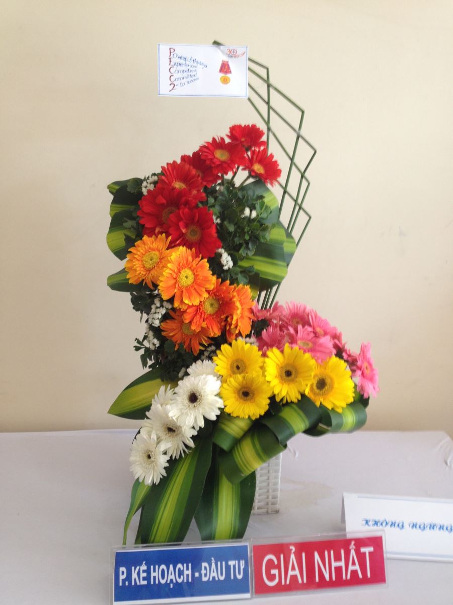 Hội thi thu hút sự tham gia của 12 tổ Nữ công đến từ các đơn vị và phòng ban Công ty. Nội dung thi gồm hai phần thi cắm hoa và thuyết trình ý tưởng. Các tổ Nữ công đều hào hứng chuẩn bị với rất nhiều phong cách và ý tưởng, khiến cuộc thi hết sức sôi động và ấn tượng. Thông qua vẻ đẹp của các loài hoa và bàn tay khéo léo, mỗi đội đã thể hiện tình cảm sâu đậm và niềm tự hào của mình về Công ty qua những tác phẩm đầy ý nghĩa như “Vươn ra biển lớn”, “Dòng thời gian”, “TV2 Tự tin – Tỏa sáng”, “Vươn lên tầm cao mới”, v.v... . Đó là tác phẩm với hoa Sen không lộng lẫy, kiêu sa mà thanh cao, thuần khiết, gợi sự liên tưởng tới sức sống mãnh liệt và vẻ đẹp tiềm ẩn trong công việc lẫn con người TV2. Hoa Hướng Dương đón ánh mặt trời hay hoa Thiên Điểu vút cao mạnh mẽ, thể hiện tinh thần vươn lên không ngừng của tập thể TV2. Những loài hoa mềm mại, yêu kiều như hoa Lan, hoa Hồng lại tượng trưng cho những người phụ nữ TV2 dịu dàng nhưng luôn sát cánh, chia lửa cùng những đồng nghiệp nam, đồng thời cũng là hậu phương vững chắc cho gia đình riêng của mình cũng như cho ngôi nhà chung TV2.