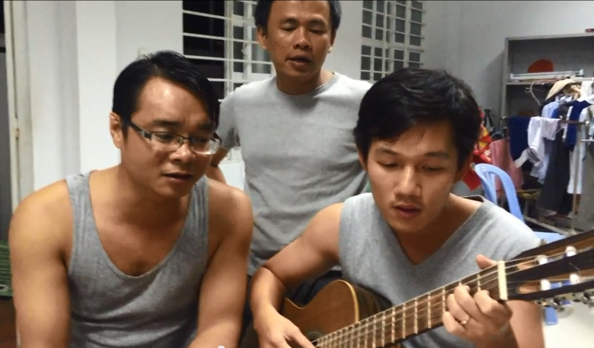 Phút ngẫu hứng của anh em trước bữa tối tại Nhà lưu trú Liên Hương
