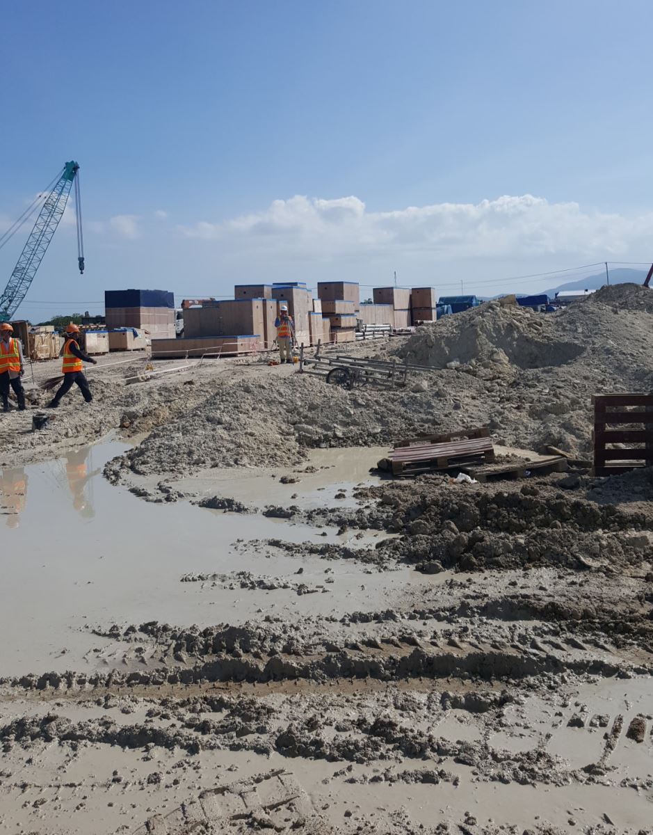 Hình ảnh công trường sau cơn mưa đầu mùa