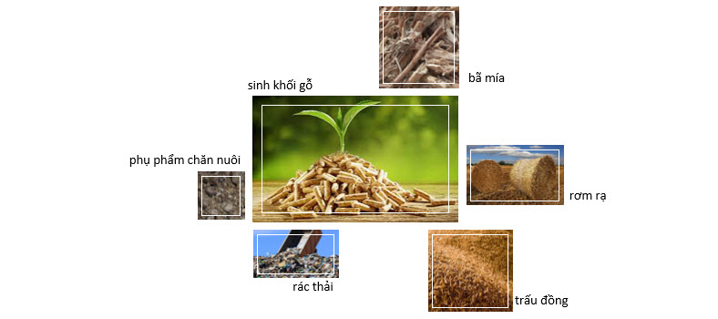 Các ví dụ điển hình về nguồn nguyên liệu sinh khối nói chung - Ảnh: Internet