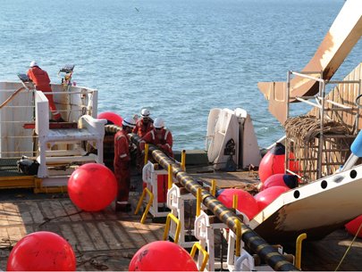 Trên tàu rải cáp ngầm. Ảnh: Đình Hoàng