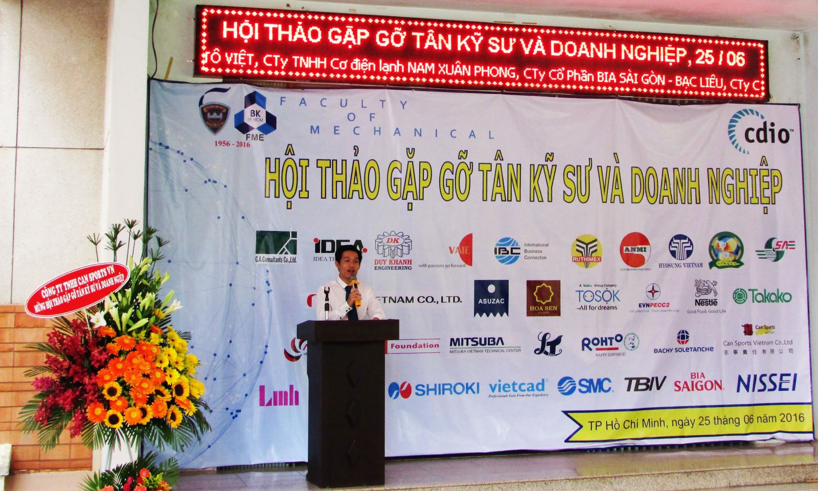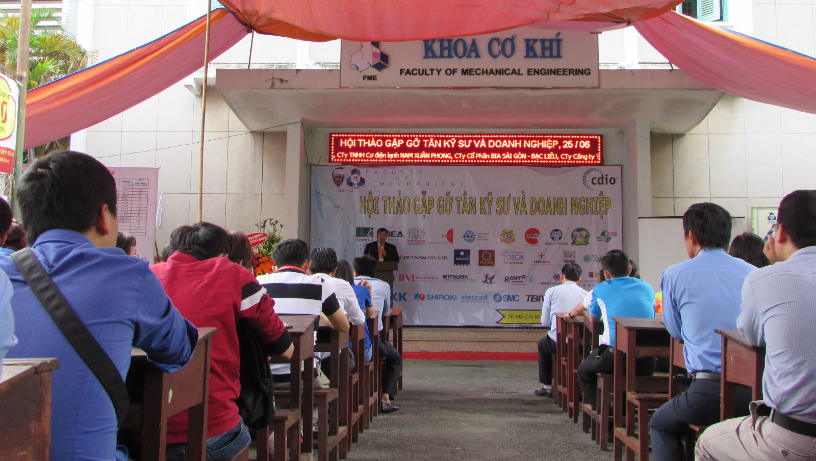 “Hội thảo gặp gỡ Tân kỹ sư và Doanh nghiệp” là hoạt động thường niên được tổ chức 2 lần/ năm. Đây là cơ hội để các kỹ sư và tân kỹ sư gặp gỡ trực tiếp các doanh nghiệp nhằm tìm kiếm thông tin tuyển dụng, việc làm và đăng ký dự tuyển. Tham dự Hội thảo có Ban lãnh đạo Khoa Cơ khí, Trường ĐHBK, đại diện của 34 doanh nghiệp đến từ Việt Nam, Nhật Bản, Hàn Quốc, Thái Lan, Đài Loan, Mỹ và gần 300 tân kỹ sư, kỹ sư đến từ các khoa của Trường ĐHBK và các trường đại học khác trong khu vực TP. HCM.