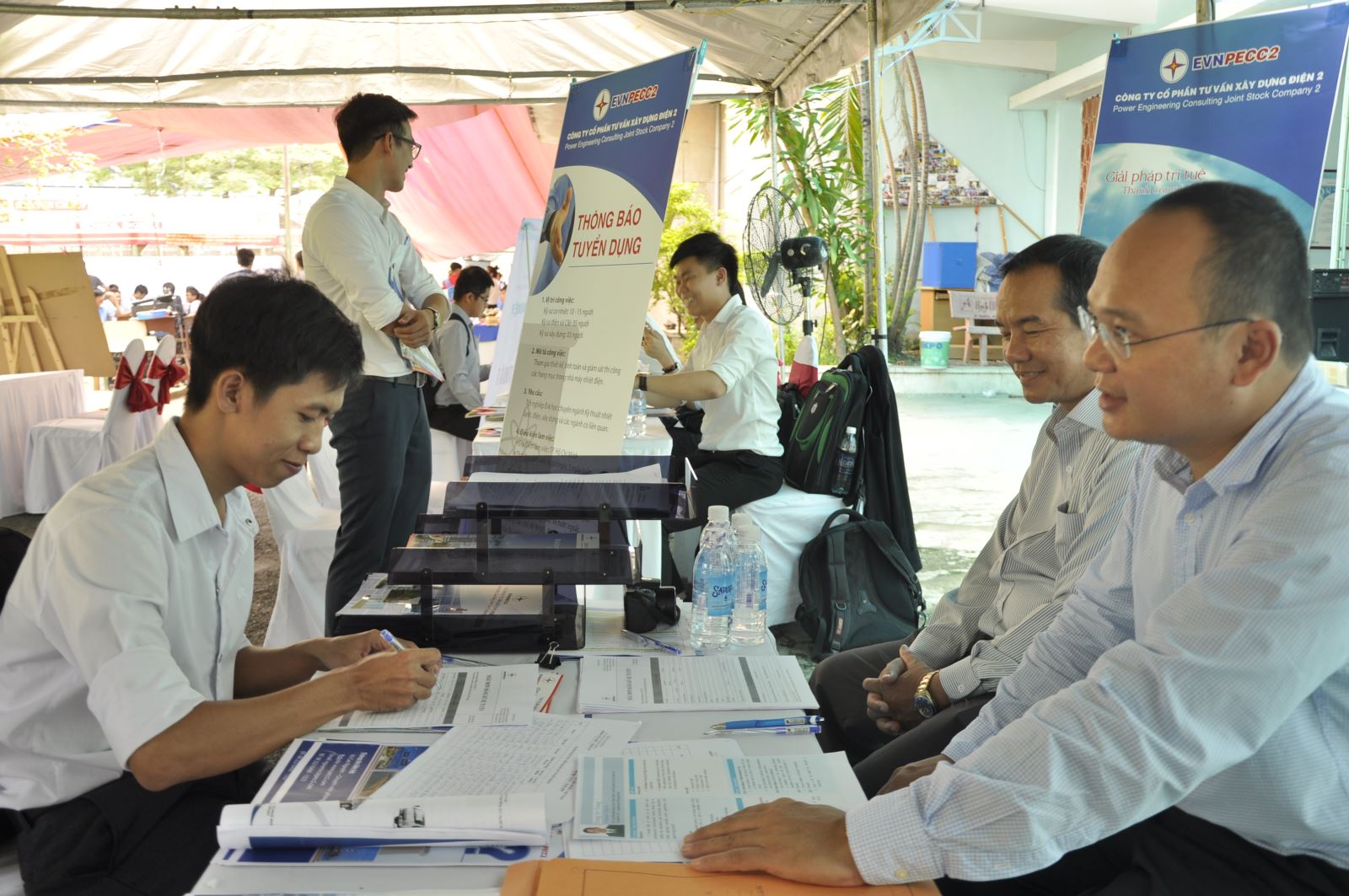 Gian hàng tuyển dụng của TV2 đã tiếp nhận nhiều hồ sơ đăng ký dự tuyển, trong đó có một số bộ hồ sơ đạt yêu cầu tuyển dụng của Công ty tại các vị trí: kỹ sư cơ nhiệt, kỹ sư điện và C&I. Các ứng viên này sẽ được mời tham dự các vòng thi tuyển tại Công ty sau Hội thảo.