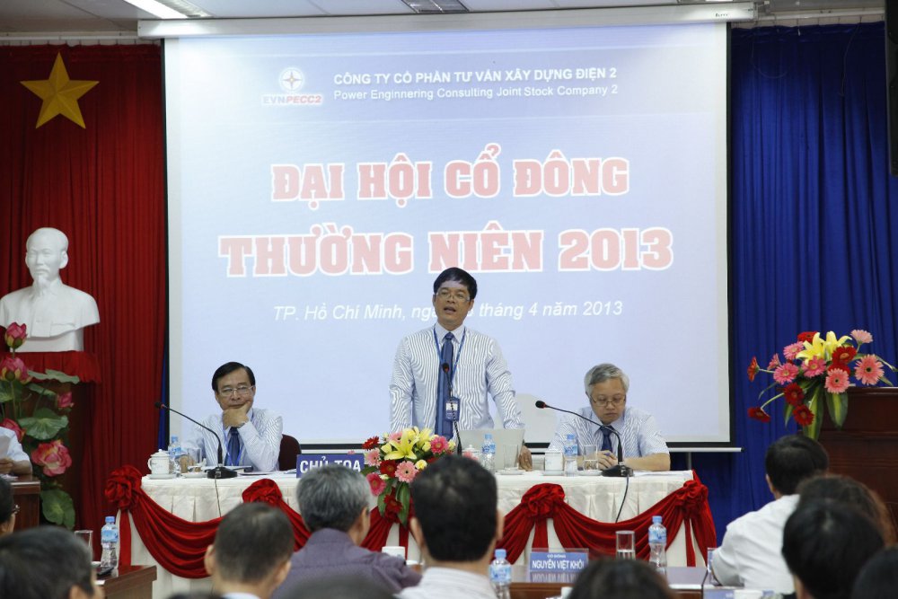 26 апреля 2013 года Акционерная Консалтинговая Компания по Электроэнергетическому строительству 2 организовала Общее собрание акционеров в присутствии представителей Вьетнамской Электроэнергетической Корпорации, членов Совета Директоров, Контрольного Совета, Дирекции и 61 Акционеров, представляющих 822 акционеров PECC2.
