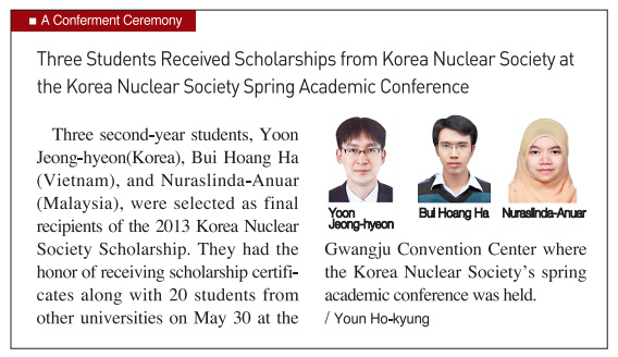 Anh vinh dự là sinh viên Việt Nam có kết quả học tập tốt, cùng hai sinh viên đến từ Malaysia và Hàn Quốc đang học năm 2 của khóa đào tạo Thạc sĩ Điện hạt nhân tại trường đào tạo hạt nhân quốc tế KEPCO (K-INGS) Hàn Quốc, cùng 20 sinh viên đến từ các trường khác được nhận học bổng này. Kỹ sư Bùi Hoàng Hà (SN 1986), là kỹ sư thuộc Trung tâm Tư vấn Nhiệt điện - Phòng Điện hạt nhân và Công nghệ, cùng với 2 kỹ sư - Trần Quang Diệp Khanh và Lê Khánh Công cũng thuộc Trung tâm Tư vấn Nhiệt điện được công ty PECC2 cử đi học thạc sĩ Điện hạt nhân tại Hàn Quốc từ tháng 3.1012 theo công văn số 286/EVN-TC&NS ra ngày 7.2.2012 của tập đoàn Điện lực EVN, nhằm xây dựng lực lượng kỹ sư tư vấn cho phát triển ngành công nghiệp Điện hạt nhân trong nước sau này. Khóa học sẽ kết thúc vào tháng 2.2014.