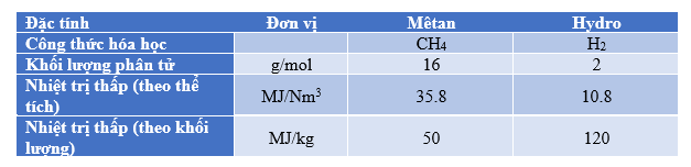 Một số đặc tính của mêtan và hydro (nguồn: GE Power)