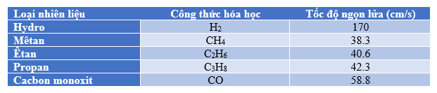 Đối với quá trình đốt cháy nhiên liệu trong buồng đốt tuabin khí, tốc độ (vận tốc) ngọn lửa là tốc độ lan truyền ngọn lửa trong quá trình cháy (hay có thể coi là tốc độ mà nhiên liệu khí lan truyền vào ngọn lửa). Tốc độ ngọn lửa là một đặc tính quan trọng được sử dụng để xác định khả năng cháy ngược của ngọn lửa vào vùng trộn trước nhiên liệu trong buồng đốt. Theo dõi bảng bên dưới có thể thấy tốc độ ngọn lửa của hydro nhanh hơn nhiều so với các loại nhiên liệu hydrocacbon khác.