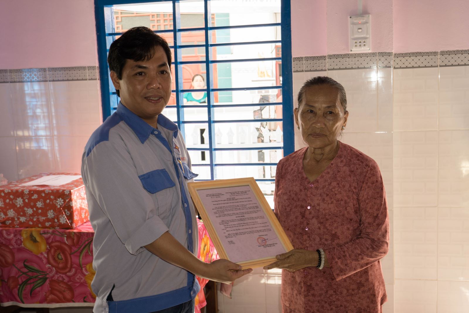 Đại diện lãnh đạo, BCH Công đoàn và đoàn thanh niên TV2 thăm và trao nhà tình nghĩa tại xã Chí Công, huyện Tuy Phong, tỉnh Bình Thuận.