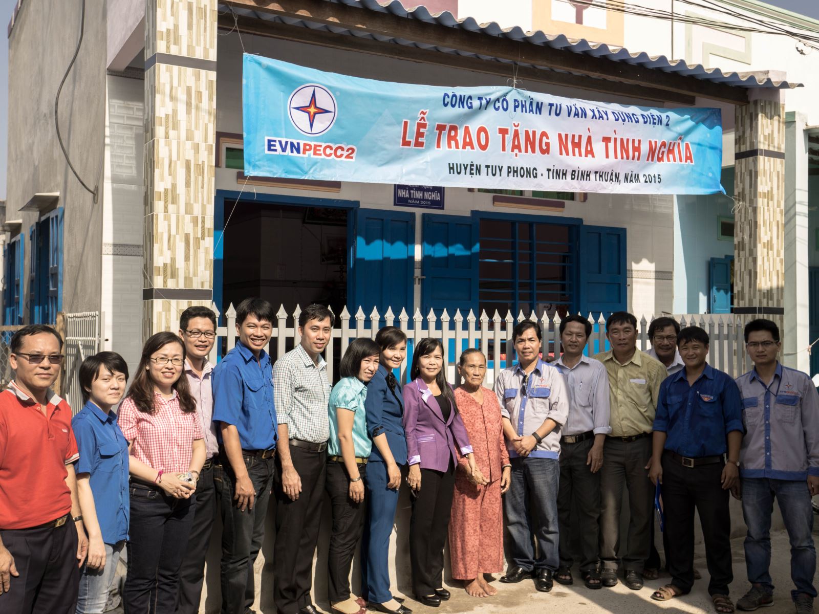 Tham dự lễ bàn giao nhà Tình Nghĩa có sự tham dự của đại diện lãnh đạo UBND huyện Tuy Phong, đại diện Đảng Ủy &UBND xã Chí Công, đại diện gia đình bà Trần Thị Hải và đại diện Công ty Cổ phần Tư vấn Xây dựng Điện 2.